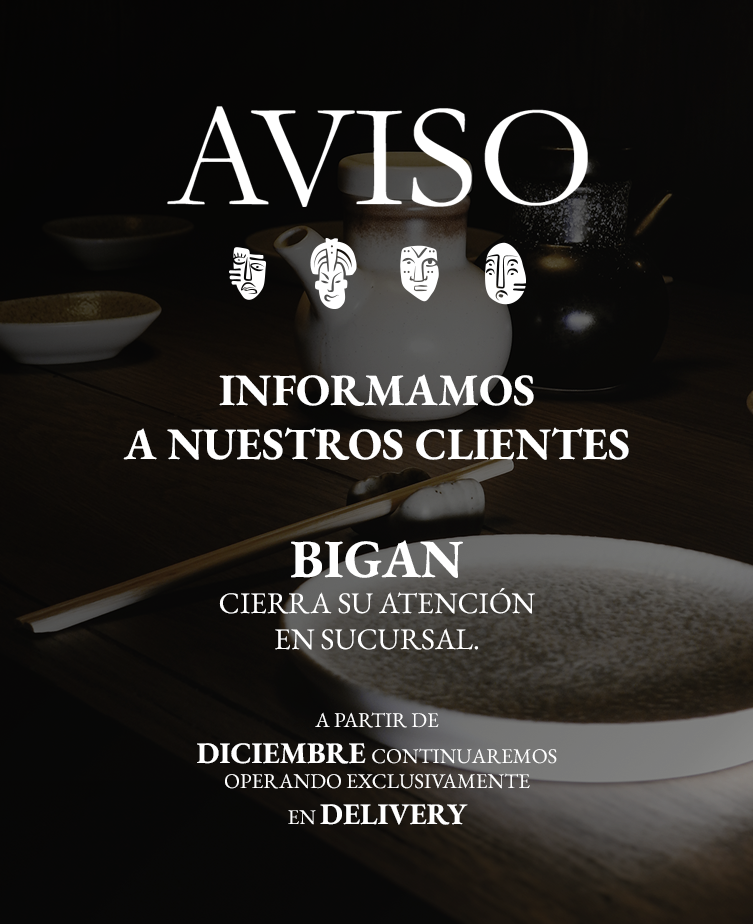 Diseñado por el destacado despacho de arquitectos LEGASPI + COMPANY, el ambiente de BIGAN ofrece una experiencia sensorial única. La marca, concebida por Carl Forssell, se inspira en las icónicas máscaras presentes en las culturas japonesa y mexicana. Estas máscaras de acero oxidado, creadas en colaboración con el estudio de arte W CHAPUT, decoran el restaurante, sumergiendo a los comensales en una atmósfera que celebra la conexión entre ambas culturas.